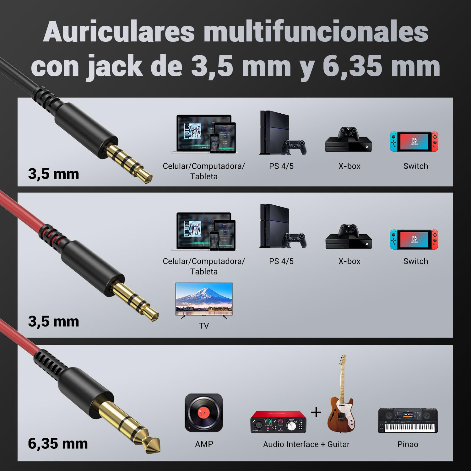 - Amplia compatibilidad: adecuado para todos los dispositivos con conector de audio de 3,5 o 6,35, como MP3, PS4, portátil, guitarra eléctrica, etc. Buen sonido, buena durabilidad, muy cómodo. Estos son los auriculares que estás buscando. [2 años de garantía]